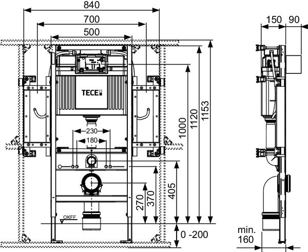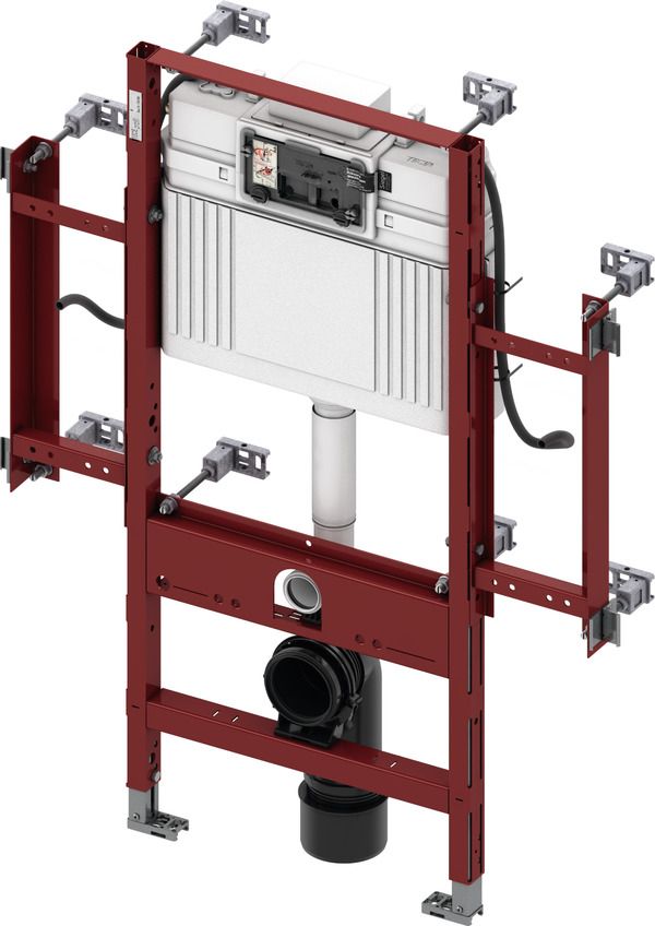 Модуль унитаза для монтажа на профиле TECEprofil, застенного монтажа на профилях или перед несущей стеной. Для безбарьерной конструкции с приподнятым монтажом унитаза. Модуль с боковыми стальными рамками и каналами для прокладки кабелей, включая крепежные элементы. Поручень безопасности = 760 мм Комплектация частично собранного блока: Сливной бачок Uni с фронтальным приводом: • Предохранительный бак из ударопрочного пластика • Готовый к монтажу герметизированный сливной бачок • Соединение для сливного бачка с внутренней резьбой 1/2" • Объем бачка 10 литров; предустановленный стандартный смыв 6 литров; возможность настройки объема смыва 4.5/7.5/9 литров; малый слив 3 литра в системе двойного смыва. Оставшийся объем можно использовать для быстрого смыва. • Изоляция для предотвращения образования конденсата • Для панелей и рукояток смыва унитаза TECE • Возможность установки системы с одинарным или двойным смывом в зависимости от используемой панели смыва • Сертификация согласно DIN EN 14055 • Акустическая группа 1 в соответствии с DIN 4109 • Бесшумный гидравлический заливной клапан Комплект поставки модуля: • Несущая монтажная рама с порошковым покрытием • Две регулируемые опоры для напольного крепления 0-200 мм • Две крепежные шпильки M12 с гайками • Восемь модульных креплений с регулировкой глубины • Четыре мульти-зажима для крепления в каркас TECEprofil • Боковые стальные рамки для крепления комплектов стальных пластин • Фановый отвод унитаза DN 90, включая переходник DN 90/100 из PP • Переходник также подходит для горизонтального монтажа • Соединительный комплект унитаза DN 90, включая защитные заглушки Дополнительно приобретается: • Комплект стальных пластин для фиксации поручней (90420xx) • Электронные компоненты активации смыва (например, дистанционная активация смыва унитаза TECEplanus) • Панель смыва унитаза (см. панели смыва) Примечание: Если используется унитаз с уменьшенной опорной поверхностью (расстояние от середины крепежного болта до нижней кромки опорной поверхности не превышает 18 см), например, V & B Memento, Sentique, Subway 2.0, необходимо установить комплект стальных кронштейнов 9041029 в нижней части конструкции. Внимание! Соответствующий комплект стальных/деревянных пластин для крепления поручня безопасности необходимо заказывать отдельно! В зависимости от производителя, не для всех поручней есть возможность использовать скрытую проводку кабелей.