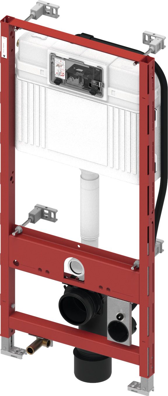 Модуль унитаза для крепления на профиле TECEprofil или монтажа в металлических или деревянных каркасных стенах, перед стеной или в углу; также подходит для сборки отдельного блока. Комплектация блока в сборе: Сливной бачок Uni для привода спереди: • Предохранительный бак из ударопрочного пластика • Предварительно собранный и герметизированный сливной бачок • Соединение для сливного бачка с внутренней резьбой 1/2" • Объем бачка 10 литров; предустановленный стандартный объем смыва 6 литров; можно настроить объем смыва 4.5/7.5/9 литров; малый слив 3 литра для системы двойного смыва. Оставшийся объем можно использовать для быстрого смыва. • Изоляция для предотвращения образования конденсата • Для панелей и рукояток смыва унитаза TECE • Возможность установки системы с одинарным или двойным смывом в зависимости от используемой панели смыва. • Сертификация согласно DIN EN 14055 • Акустическая группа 1 в соответствии с DIN 4109 • Бесшумный гидравлический заливной клапан Комплект поставки модуля: • Несущая монтажная рама с порошковым покрытием поверхности • Две крепежные шпильки M 12 с гайками • Фановый отвод унитаза DN 90, включая переходник DN 90/100 из PP • Переходник также подходит для горизонтального монтажа • Соединительный комплект унитаза DN 90, включая монтажные защитные заглушки • Предварительно установленный кабель управления для функции автоматического смыва с унитазом-биде TOTO Neorest • Предварительно установленная монтажная коробка для подключения электропитания унитаза-биде • Предварительно установленная монтажная пластина для подсоединения унитаза-биде к водопроводу • Настенный уголок 1/2" x 1/2" со звукоизоляцией • Четыре настенных крепления с регулировкой глубины Возможность добавления приподнятого монтажа унитаза для высоты сиденья 48 см в соответствии с немецким стандартом DIN 18040 (DIN 18040: Безбарьерная конструкция. Часть 1. Общественные здания и рабочие места). Дополнительно приобретаются: • Панель смыва унитаза (см. панели смыва) • Контейнер для гигиенических таблеток (опционально)
