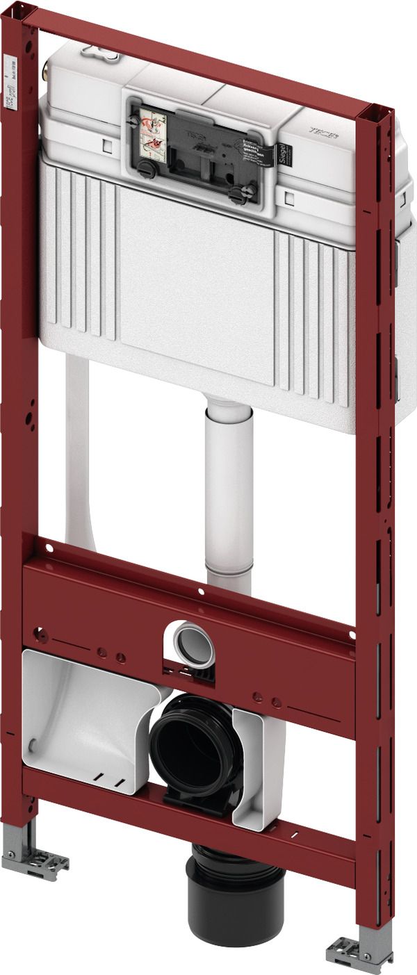 Модуль унитаза для крепления на профиле TECEprofil, монтажа в металлические или деревянные каркасные стены, монтажа перед стеной или в углу, также подходит для сборки отдельного блока. Совместим с универсальным соединением унитаза-биде со скрытым соединением водопровода и электропитания, например, Geberit AquaClean 8000/Sela/Mera, Duravit SensoWash C, V & B ViClean, TOTO SG/EK/GL. Также можно подсоединять изделия других производителей. При этом предварительно необходимо проверить расположение соединений. Комплект поставки предварительно собранного блока: Сливной бачок Uni с приводом спереди: • Предохранительный бак из ударопрочного пластика • Готовый к монтажу и герметизированный сливной бачок • Соединение для сливного бачка с внутренней резьбой 1/2" • Объем бачка 10 литров, предустановленный объем стандартного смыва 6 литров, можно настроить объем смыва 4,5/7,5/9 литров; объем малого смыва 3 литра в системе двойного смыва. Оставшийся объем можно использовать для быстрого смыва. • Изоляция для предотвращения образования конденсата • Для панелей и рукояток смыва унитазов TECE • Возможность установки системы с одинарным или двойным смывом в зависимости от используемой панели смыва. • Сертификация согласно DIN EN 14055 • Акустическая группа 1 в соответствии с DIN 4109 • Бесшумный гидравлический заливной клапан Комплект поставки модуля: • Несущая монтажная рама с порошковым покрытием поверхности • Две крепежные шпильки M 12 с гайками • Фановый отвод унитаза DN 90, включая переходник DN 90/100 из PP • Переходник также подходит для горизонтального монтажа • Соединительный комплект унитаза DN 90 • Короб, включая вставную воронку для универсального позиционирования соединения для подачи воды • Кабельная коробка для универсального позиционирования подключения электропитания • Крышка корпуса с защитными заглушками Дополнительно приобретается: • Панель смыва унитаза (см. панели смыва) • Крепежные элементы для монтажа перед стеной, углового монтажа или монтажа на деревянных конструкциях • Контейнер для гигиенических таблеток (опционально) • Комплект для подключения унитазов-биде для модуля высотой 1120 мм, артикул 9880052 Примечание. При использовании унитаза с уменьшенной опорной поверхностью (например, Villeroy & Boch Memento, Sentique, Subway 2.0) необходимо установить комплект стальных кронштейнов 9041029 в нижней части конструкции.