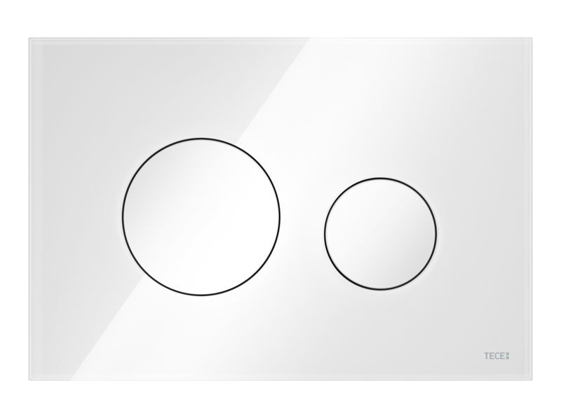 Панель смыва для смывных бачков TECE, фронтальная или верхняя установка. Плоская стеклянная панель смыва с двумя установленными на пружинах клавишами смыва. Подходит для монтажа на уровне стены вместе с монтажной рамкой унитаза (например: 9240649). Совместима с контейнером для гигиенических таблеток Размеры (Ш x В x Г): 220 x 150 x 11 мм Монтажная рамка для установки панели смыва на уровне стены в комплектацию не входит.