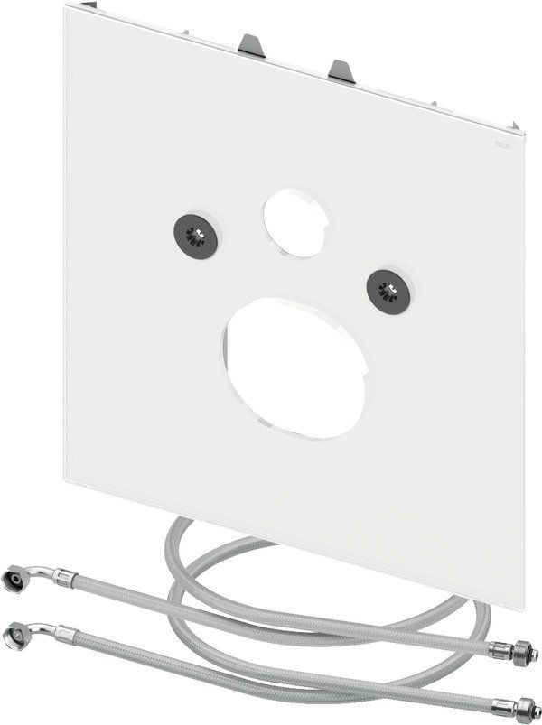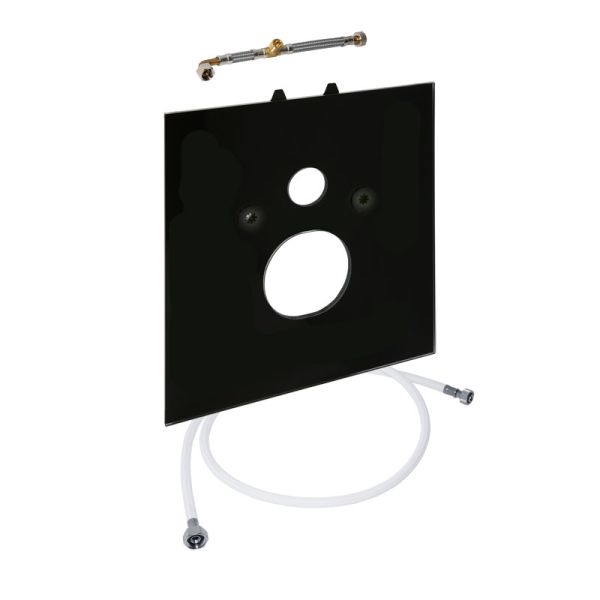 Нижняя стеклянная панель для установки унитазов-биде Duravit SensoWash C, а также Slim или Villeroy & Boch Viclean L, в комплекте со звукоизолирующей прокладкой, отводом для подключения воды внутри бачка и шлангом для подводки воды. Размеры (В x Ш x Г): 446 x 430 x 16 мм
