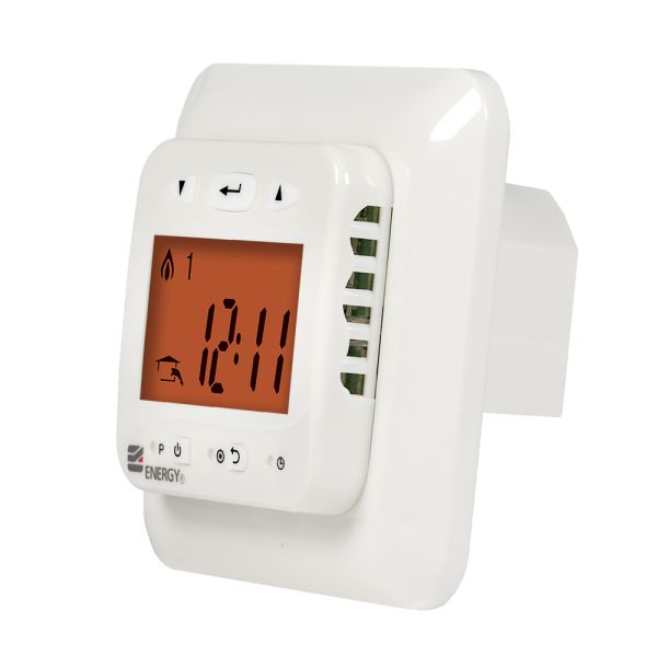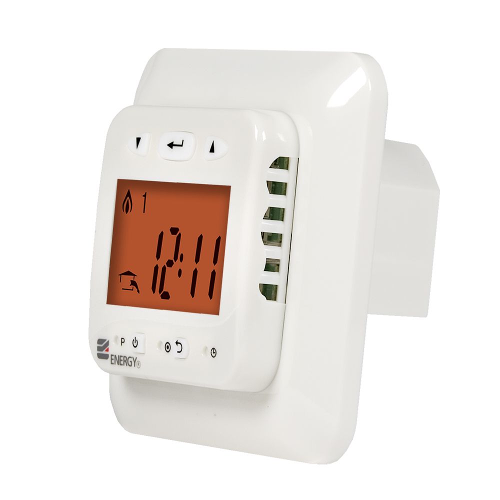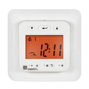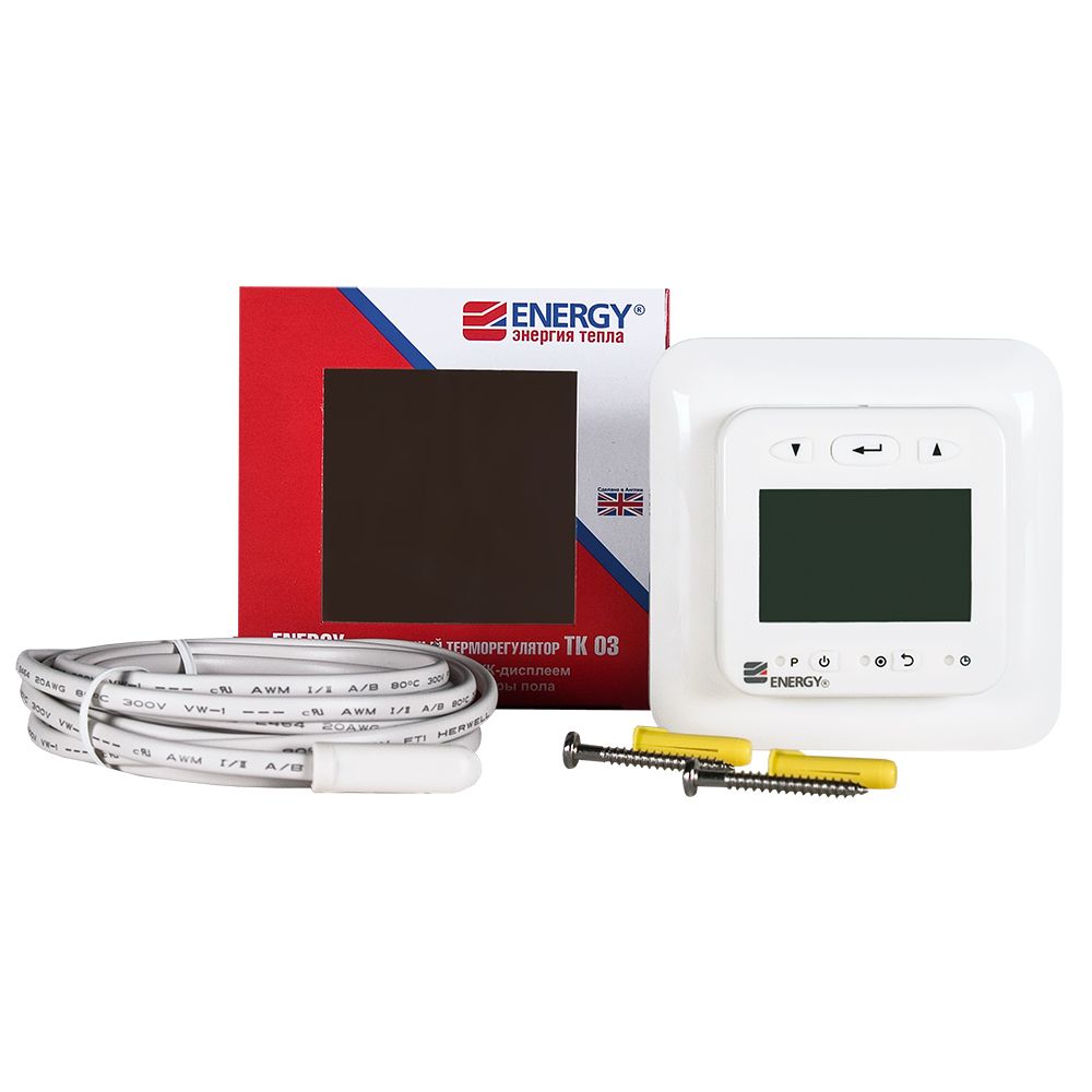 Электронный программируемый терморегулятор Energy TK03 с выносным датчиком температуры пола. Предназначен для скрытого утопленного монтажа с использованием стандартной монтажной коробки.Функция программирования позволяет настраивать индивидуальные графики нагрева помещения: четыре программы для рабочих дней недели и две - для выходных дней. Для каждого режима устанавливается время начала и окончания работы и необходимая температура. Минимальное время работы программы -10 минут.Оснащен автоматической функцей «ранний старт» - используя данные за предыдущий день работы, прибор вычисляет время, за которое пол нагреется до заданной температуры. На величину этого времени корректируется запуск теплого пола.Высокая точность установки температуры 0,5°С в диапазоне от +5°С до +40°С и функция программирования сокращают время работы теплого пола и снижают расходы на потребляемую электроэнергию на 60-80%.Управление осуществляется с помощью пяти кнопок. При нажатии кнопок на дисплее включается оранжевая подсветка. Вся информация о значениях температур и режимах работы отображается на жидкокристаллическом дисплее крупными и четкими символами.Терморегулятор Energy TK03 защищён от конденсата (класс защиты IP 21). Допускается установка во влажные помещения.