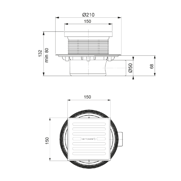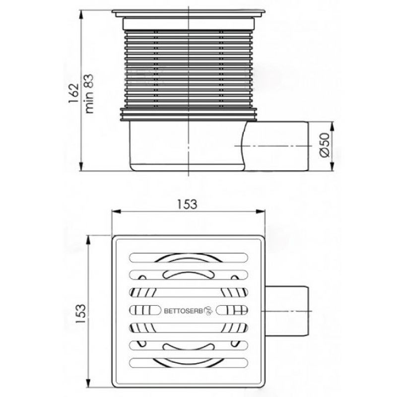 Трап с мульти-сифоном BETTOSERB 14702509 Superior Quadro 15х15 горизонтальный выпуск купить