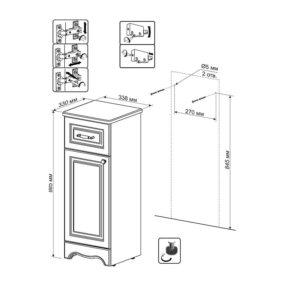 Тумба напольная Бриклаер Анна 4627125411465 левая 34 см белый купить