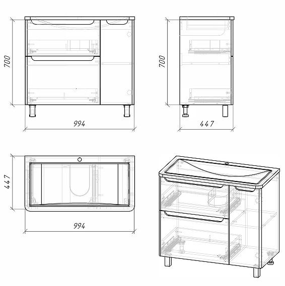 Тумба напольная под раковину Grossman ADEL-1010002-100см белая купить по выгодной цене в Gidro-butik.ru с доставкой по всей России.