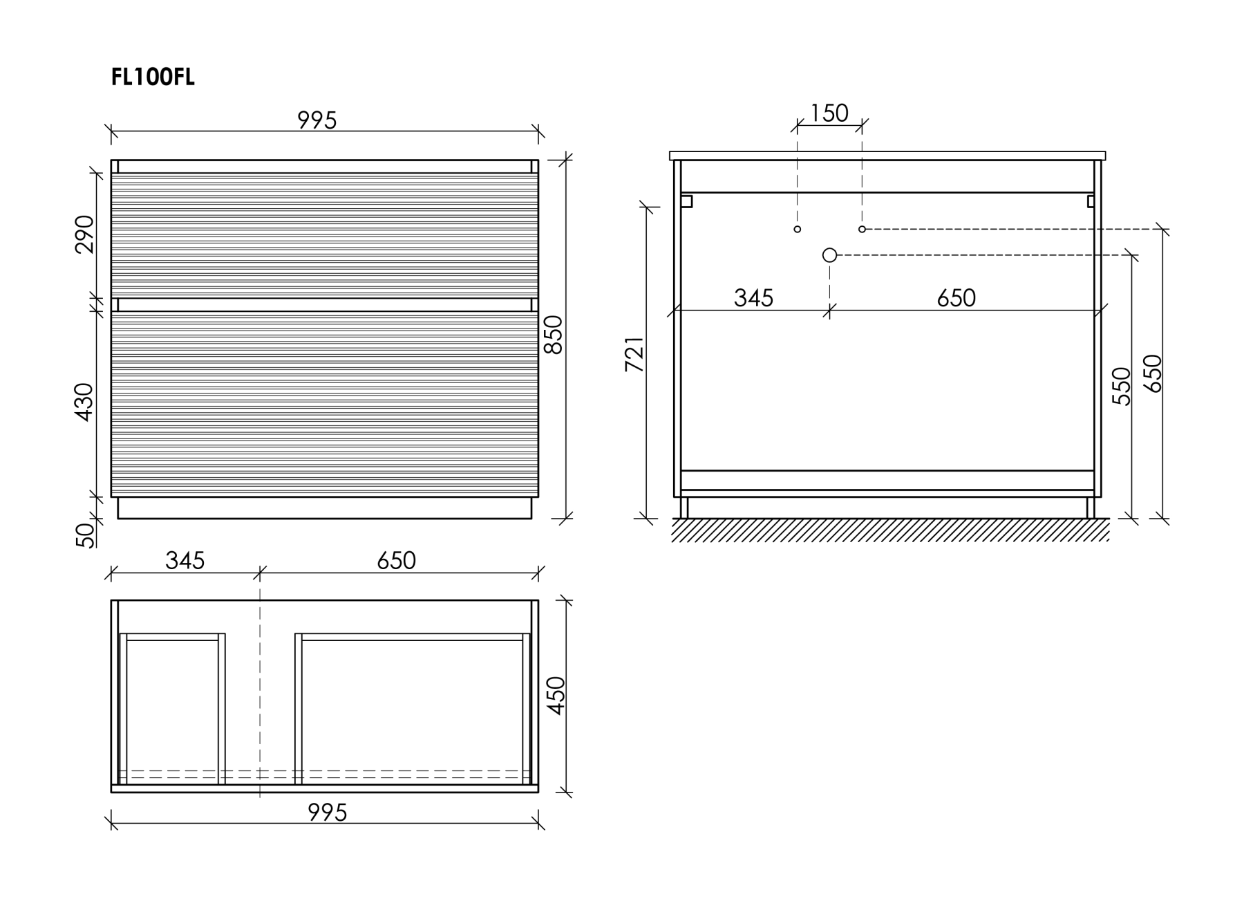 - Тумба напольная с двумя выдвижными ящиками с доводчиками скрытого монтажа