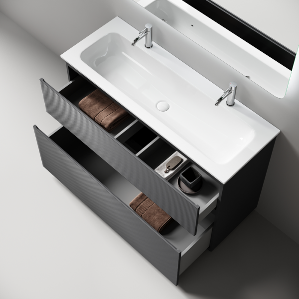 - Тумба напольная с двумя выдвижными ящиками с доводчиками скрытого монтажа
