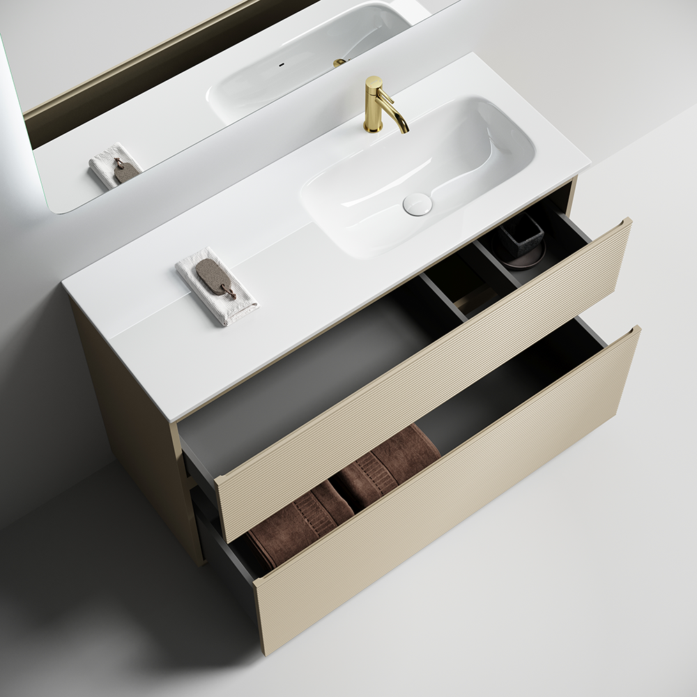 - Тумба напольная с двумя выдвижными ящиками с доводчиками скрытого монтажа
