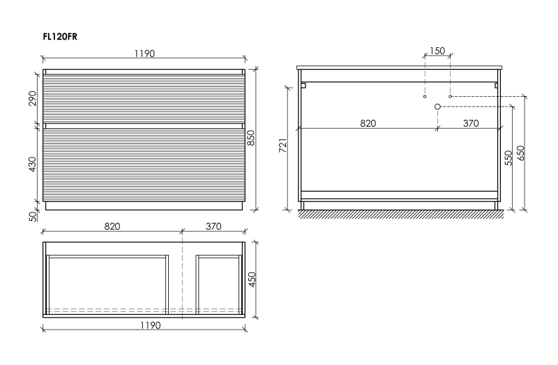 - Размер 1190х445х850, правая