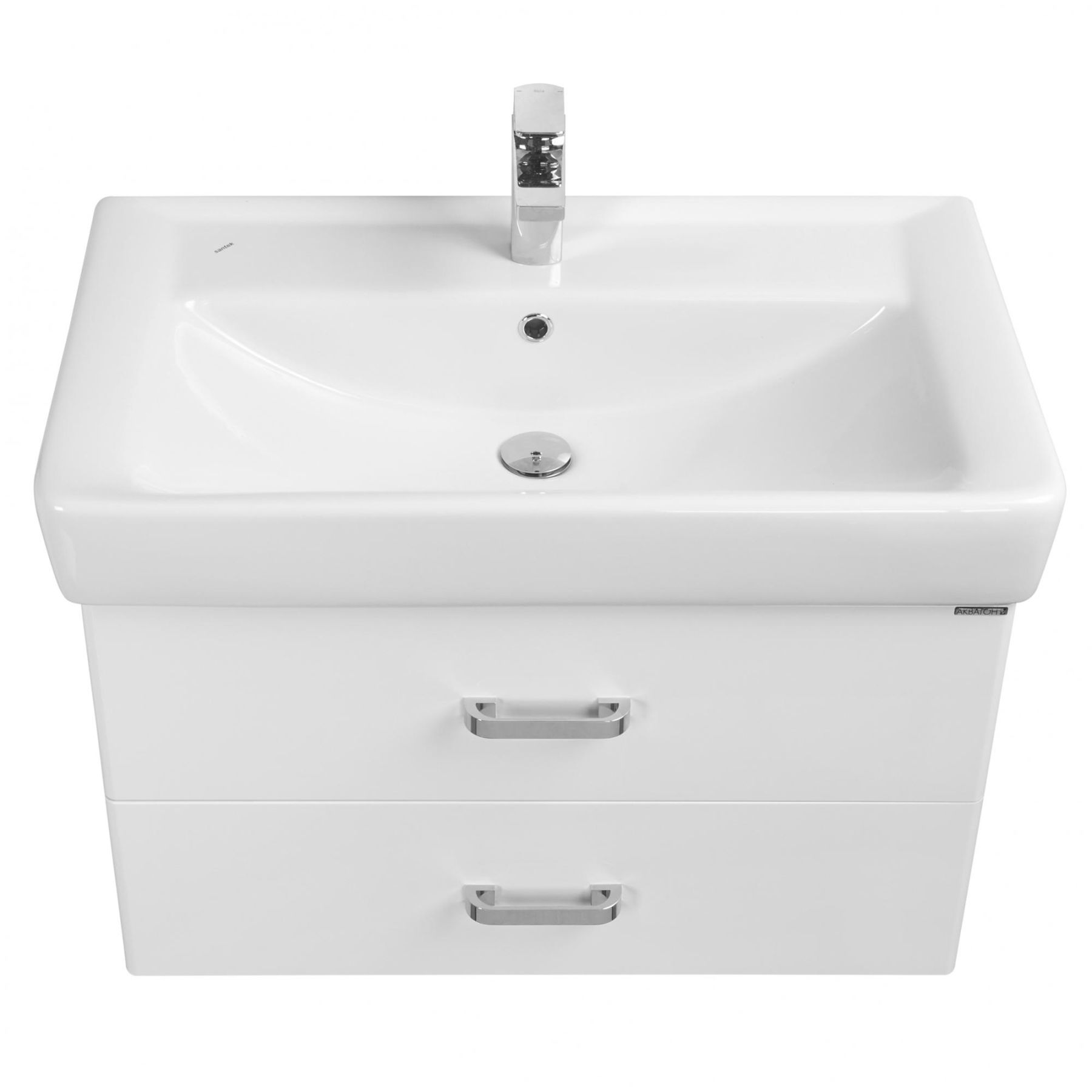 Стильная лаконичная модель, созданная для небольших ванных комнат. В тумбе имеются два ящика, изготовленные из декоративной влагостойкой ДСП. Верхний ящик имеет специальную организацию пространства, позволяющую хранить мелкие предметы, а нижний широкий и вместительный для более крупных предметов.