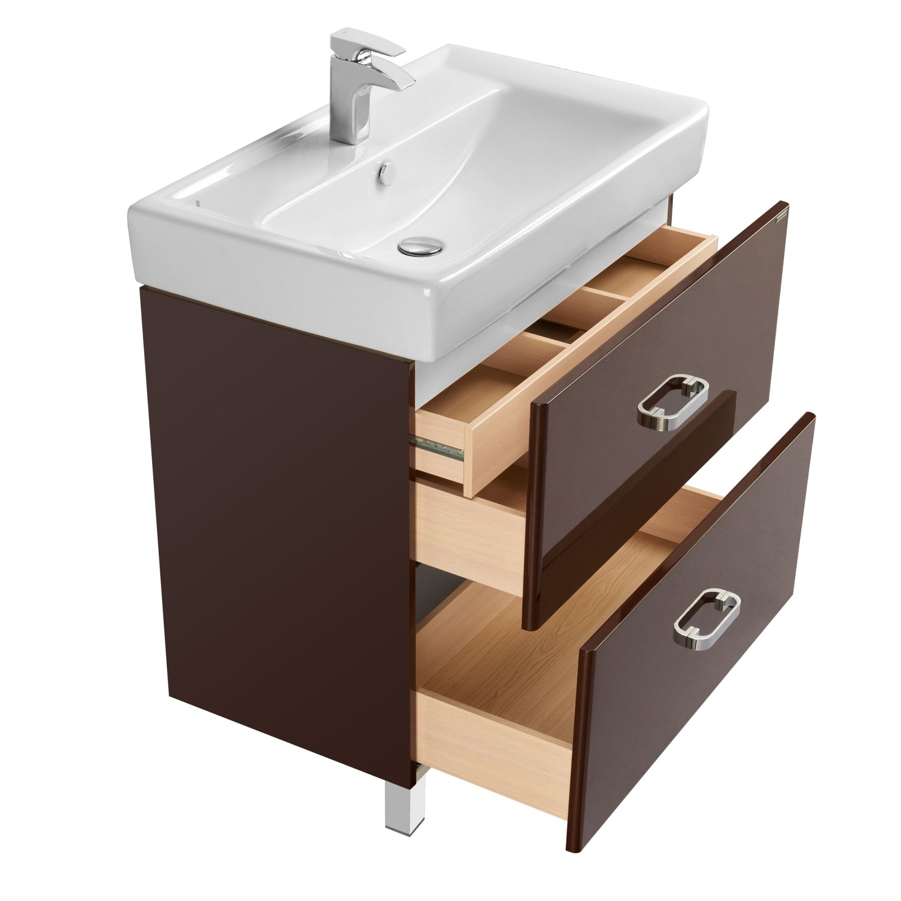 - Встроенные в ящики доводчики обеспечивают бесшумное и плавное закрывание