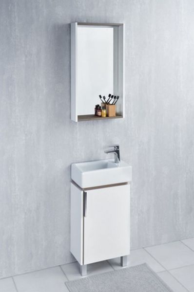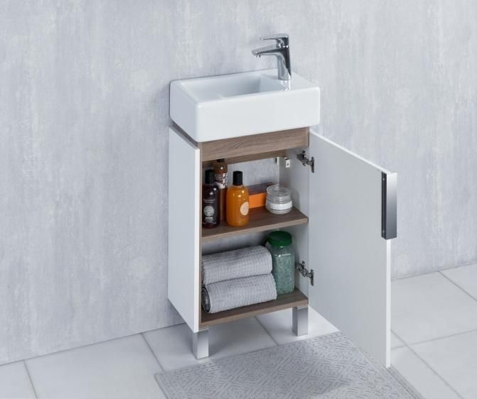Подвесная тумба Бэлла от бренда AQUATON в современном стиле хай-тек придется по вкусу обладателям небольших ванных комнат. Корпус и фасады изготовлены из влагостойкой ЛДСП в белом цвете, который комбинируется с эффектной отделкой джарра. За фасадом-створкой, который украшает изящная ручка-рейлинг, находится регулируемая по высоте полка. Петли оборудованы интегрированной системой плавного закрывания, что позволяет закрывать дверцу тумбы почти бесшумно. Для комплектации тумбы Бэлла идеально подойдет прямоугольная раковина Santek Эрис 46.