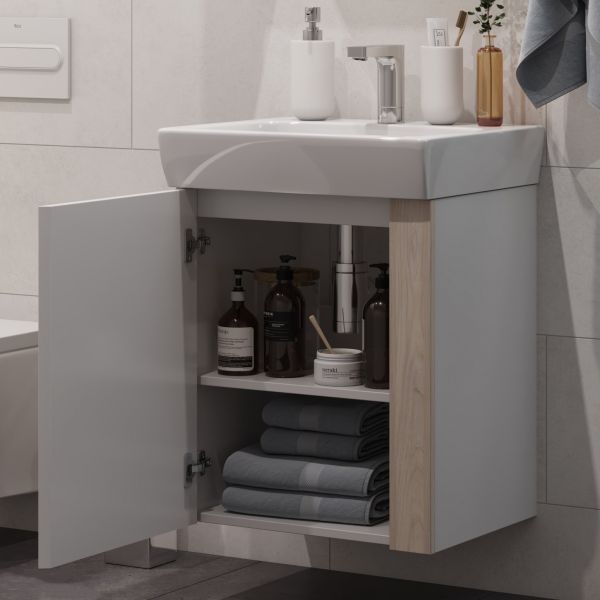 Тумба для комплекта Акватон Кантри 55 белый/дуб верона не только несравненное украшение для ванной комнаты, но и великолепное функциональное решение любого санузла.В производстве используют только качественные влагостойкие материалы (ДСП), в составе которых полностью отсутствуют опасные вещества. Коллекция Кантри выполнена в эксклюзивном дизайнерском решении в лучших традициях современного стиля. Белый, основной цвет исполнения Акватон Кантри, безупречно впишется в любой дизайн проект. Тумба под раковину предусматривает удобную и вместительную систему хранения, состоящую из дверей, полочек. Качественные доводчики позволяют обеспечить мягкое и тихое закрывание. Ключевые габариты изделия: ширина 51.2 см, глубина 41.6 см, высота 59.5 см.Россия родина бренда Акватон, вся продукция производится со строгим соблюдением всех стандартов, благодаря чему можно быть абсолютно уверенным в надежности и высоком качестве. Тумба для комплекта Акватон Кантри 55 белый/дуб верона это абсолютный комфорт в современной ванной комнате.