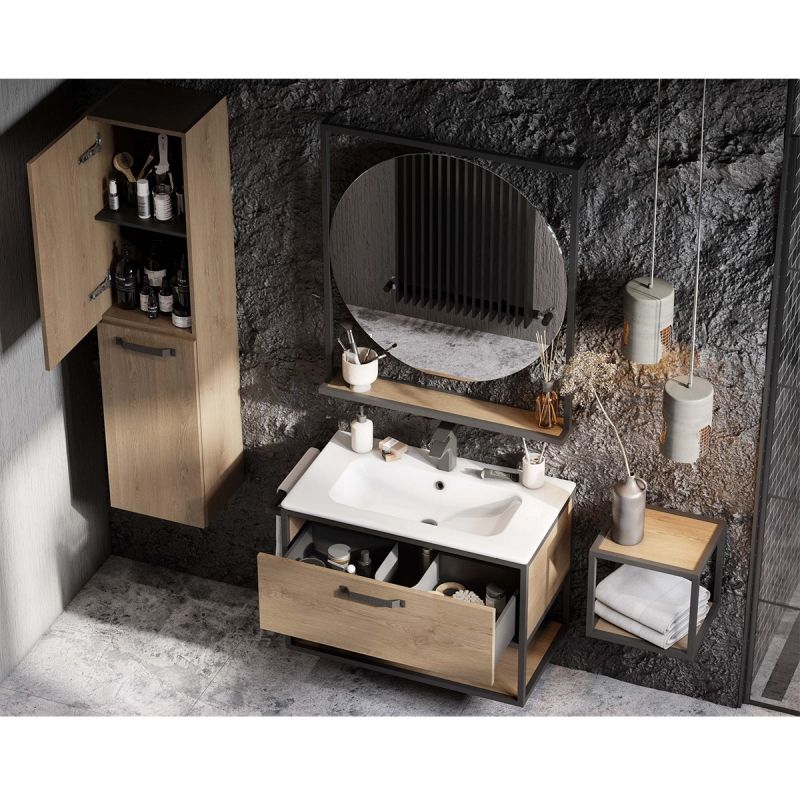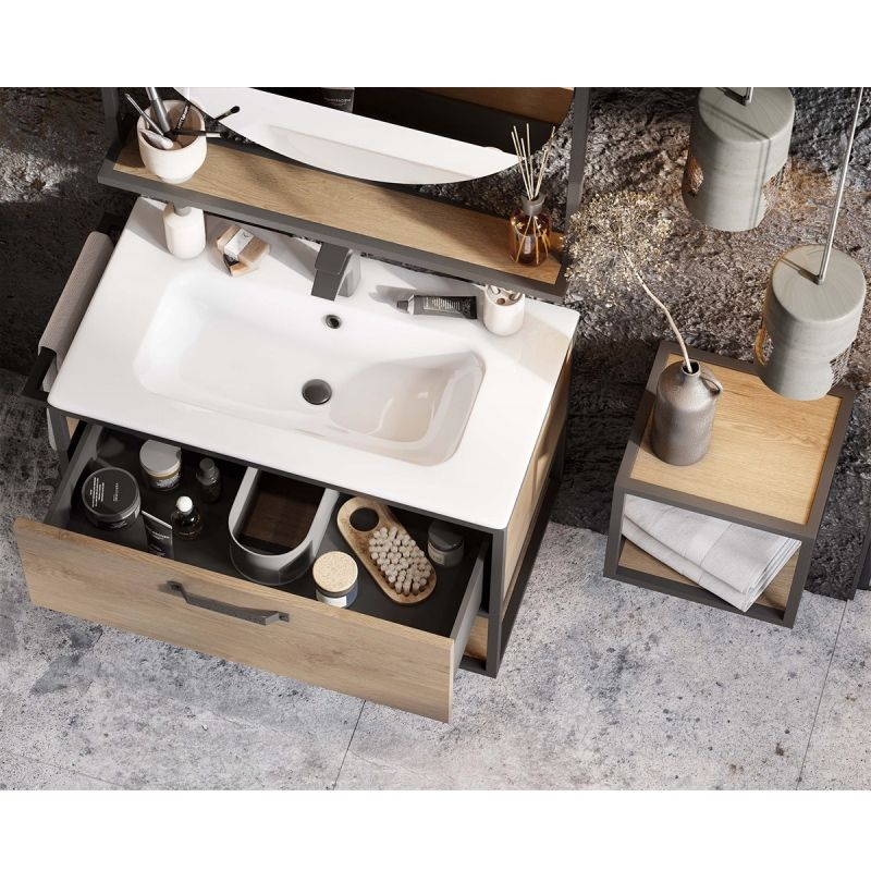 - Тумба Лофт Фабрик 65 в цвете дуб кантри – это сочетание натурального древесного декора и благородства металла