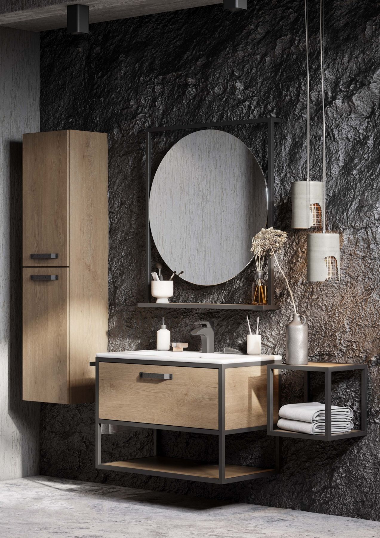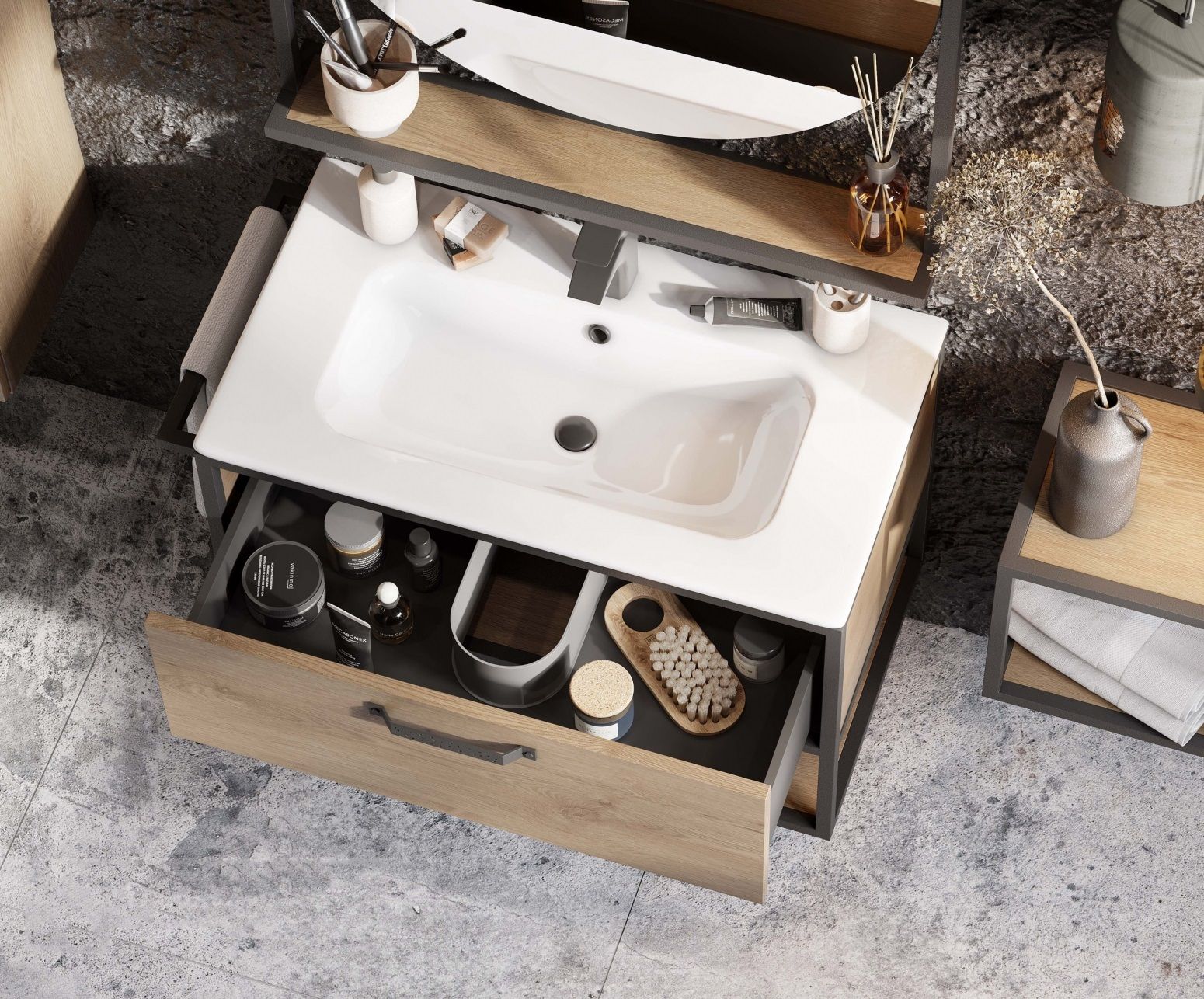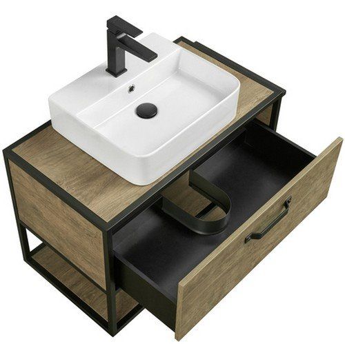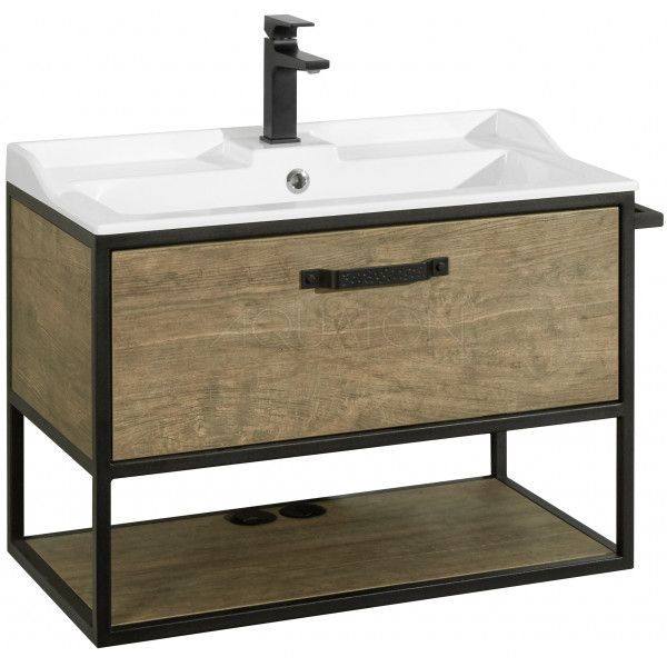 - Тумба Лофт Фабрик 80 в цвете дуб кантри – это сочетание насыщенного древесного декора и благородства металла