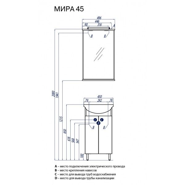 АКВАТОН МИРА 1A104401MR010 тумба под раковину 45 см белый