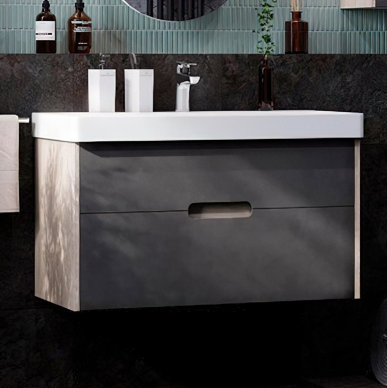 Тумба для комплекта Акватон Оливия 90 грей/дуб ойстер замечательно впишется в дизайн любой ванной комнаты, будь то компактная ванная в многоэтажном доме или большой санузел в загородном коттедже. Подвесной способ установки дает возможность не только визуально увеличить пространство, но и обеспечивает быстрый и удобный доступ для уборки.Компания Акватон использует при производстве высококачественные водоотталкивающие материалы (ДСП), соответствующие всем необходимым требованиям безопасности. Коллекция Оливия выполнена в эксклюзивном дизайнерском решении в лучших традициях современного стиля. Светлое дерево, основной цвет исполнения Акватон Оливия, отлично подходящий большинству дизайнерских решений. Тумба под раковину предусматривает удобную и вместительную систему хранения, состоящую из ящиков. Качественные доводчики позволяют обеспечить мягкое и тихое закрывание. Ключевые габариты изделия: ширина 88.2 см, глубина 42.7 см, высота 48 см.Россия родина бренда Акватон, вся продукция производится со строгим соблюдением всех стандартов, благодаря чему можно быть абсолютно уверенным в надежности и высоком качестве. Тумба для комплекта Акватон Оливия 90 грей/дуб ойстер это абсолютный комфорт в современной ванной комнате.