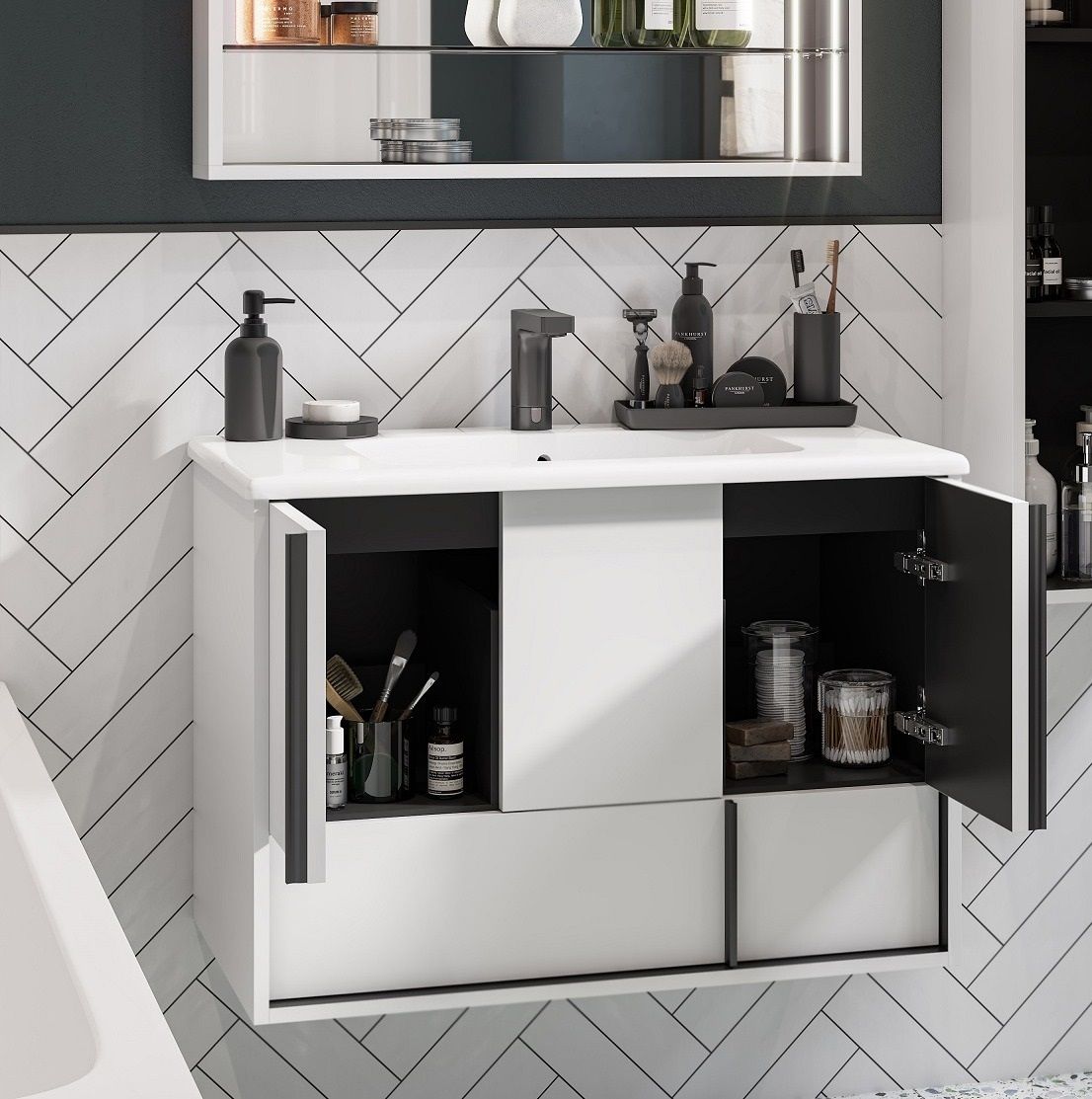 Тумба для комплекта Акватон Ривьера 60 роскошно подойдет как для просторной ванной комнаты, так и для небольшого помещения. Подвесной способ установки дает возможность не только визуально увеличить пространство, но и обеспечивает быстрый и удобный доступ для уборки.В производстве используют только качественные влагостойкие материалы (МДФ), в составе которых полностью отсутствуют опасные вещества. Серия Ривьера отличается превосходным дизайном с соблюдением всех важных элементов современного стиля. Основным цветом, в котором выполнена тумба под раковину Акватон Ривьера является белый, гармонирующий с большинством интерьерных решений. Тумба под раковину предусматривает удобную и вместительную систему хранения, состоящую из дверей, ящиков. Важные размеры товара: ширина 78.6 см, глубина 45 см, высота 55 см.Страной бренда Акватон является Россия, все товары производятся с выполнением соответствующих стандартов качества, что позволяет быть полностью уверенными в долговечности и надежности. Тумба для комплекта Акватон Ривьера 60 поможет сделать уютным любой интерьер и создать идеальную ванную комнату.