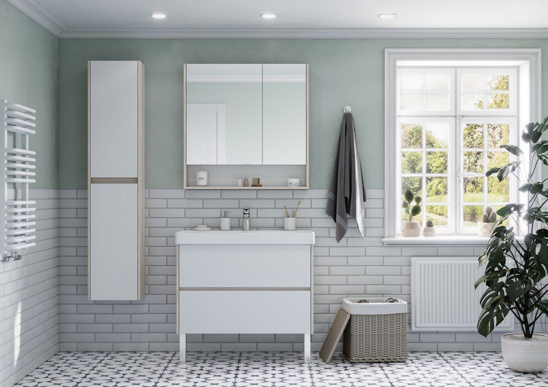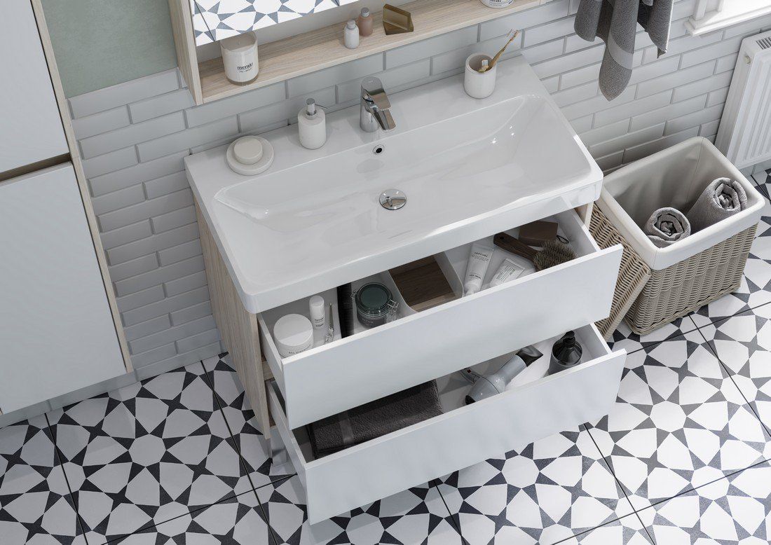 Тумба под раковину Акватон Сканди 90см белый/дуб верона 1A251901SDB20 купить