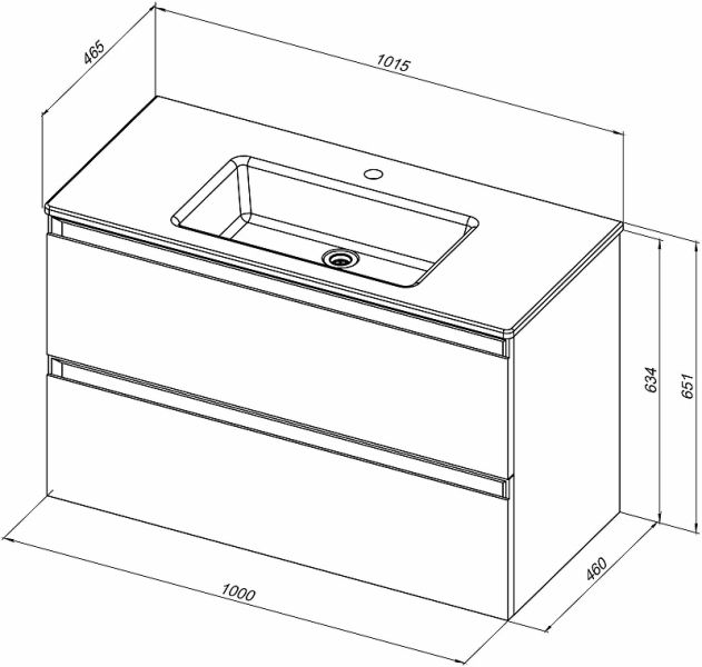 Габариты корпуса тумбы (ШхВхГ): 1000х634х460 мм.