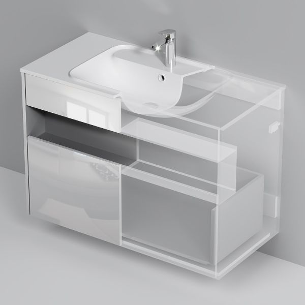 Коллекция мебели Func отличается своей функциональностью, вариативностью и мобильностью. Наши инженеры продумали и учли каждую деталь, чтобы сделать взаимодействие с продуктами максимально простым и комфортным для всех членов семьи. Удобный выдвижной ящик и вместительная открытая ниша позволяют хранить все необходимые средства под рукой. Невероятно мягкое открытие и закрытие благодаря направляющим скрытого монтажа с системой soft close. Универсальный монтаж подвесной и напольный (комплект ножек приобретается отдельно).