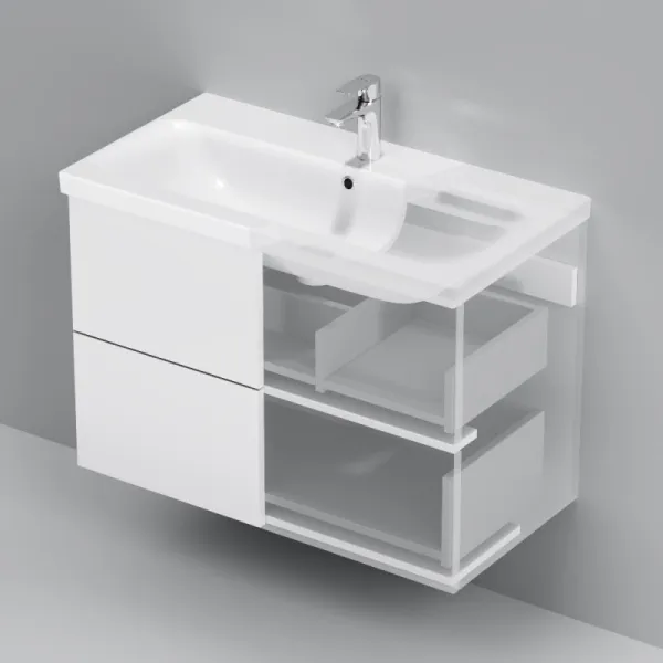 Тумба под раковину Am.Pm Gem M90FHX0802WG подвесная белый 80 смТумба под раковину Am.Pm Gem 80 M90FHX0802WG подвесная, белый глянец. Фурнитура push-to-open - открытие ящика легким нажатием на фасад. Два ящика (внутри с антискользящим покрытием цвета антрацит). В верхнем ящике органайзер для хранения гигиенических принадлежностей. Комплектация: тумба под раковину, крепеж к стене, инструкция