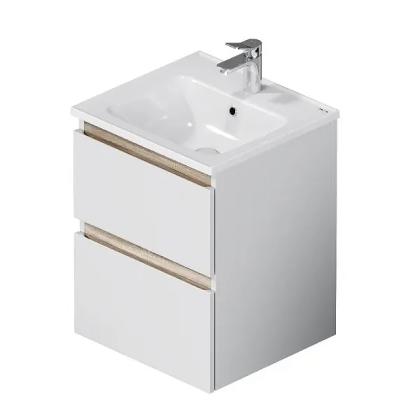 Подвесная тумба помогает сэкономить место в ванной комнате, визуально увеличивая пространство. Установка на удобной высоте. Оптимизация хранения вещей внутри ящиков. Грамотно расположенные скрытые коммуникации внутри тумбы. Бортик по контуру раковины препятствует проливу воды за мебель. Сантехнический фарфор - долговечный и прочный материал, обладающий высокой гигиеничностью.