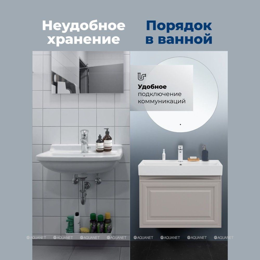 Тумба под раковину Aquanet Агата 75 бежевый сочетает функциональность и современный дизайн. Она подойдет для любых интерьеров. Устойчивость к влаге и прочные материалы делают ее надежным выбором.