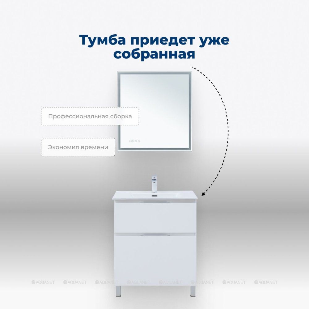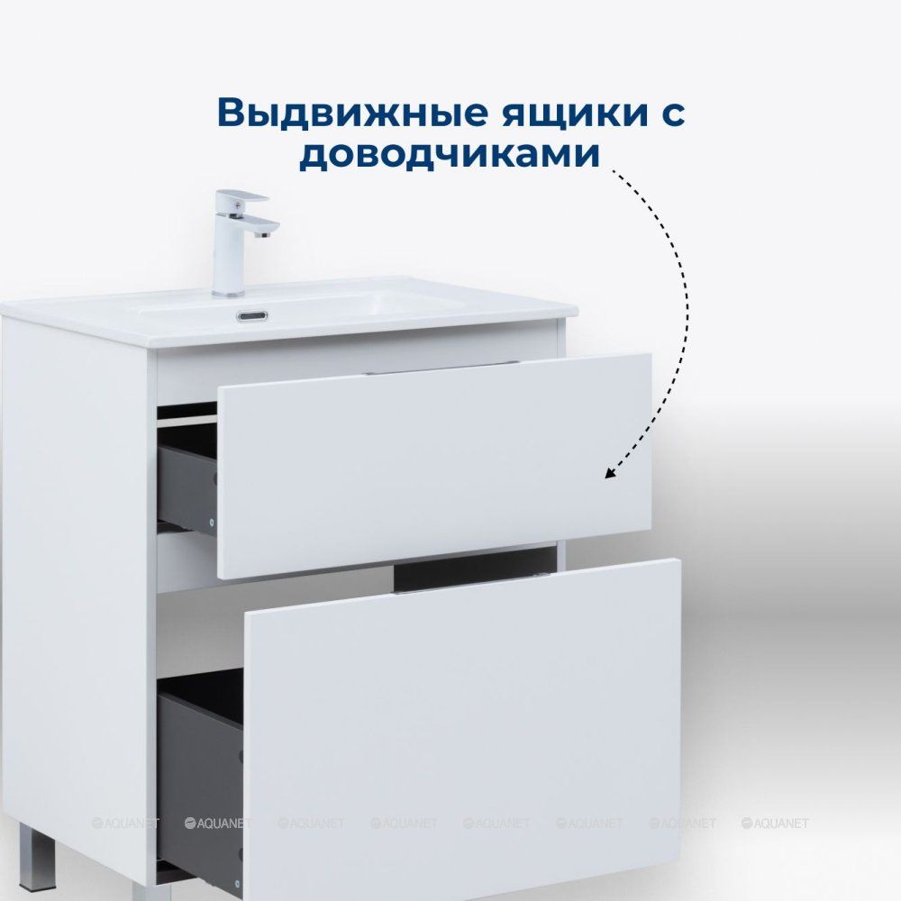 Тумба под раковину Aquanet Алвита New 70 напольная, белый матовый. Внутренние детали изготовлены из влагостойкой ЛДСП в цвете антрацит.