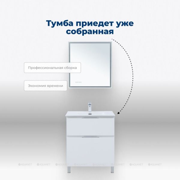Тумбы комплектуются керамическими раковинами Flat 50/60/70/80/100 (Aquanet) или Flash 50/60/70/80/100 (Aquanet).