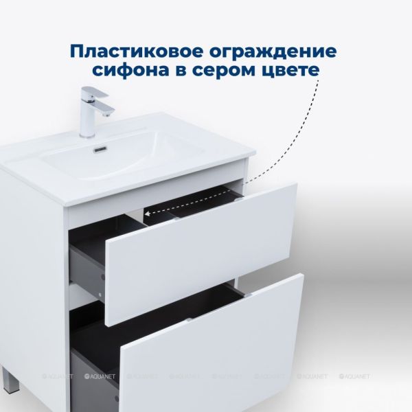 Тумбы комплектуются керамическими раковинами Flat 50/60/70/80/100 (Aquanet) или Flash 50/60/70/80/100 (Aquanet).