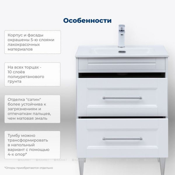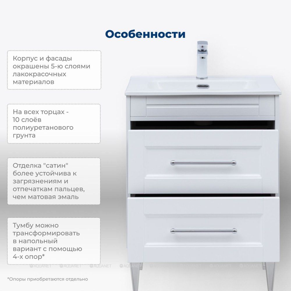 Тумба под раковину Aquanet Бостон new 60 белый сатин
