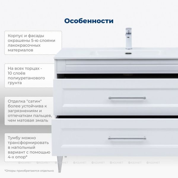 Тумба под раковину Aquanet Бостон New 306369 100 см белый сатин купить