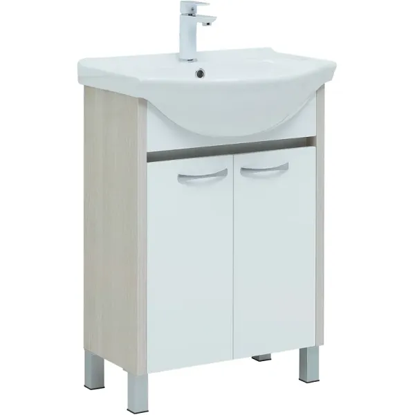 Тумба под раковину Aquanet Донна 273996 60 см белый глянец/белый дуб купить