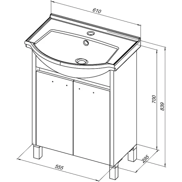 Раковина Shenxin 60 0060 изготовлена из не вызывающего аллергии, экологичного и не накапливающего запахи материала. Аккуратный бортик не позволяет гигиеническим принадлежностям падать. Закругленные края исключат риск получения случайных травм. Комплект отлично впишется в современные интерьеры ванных комнат, особенно органично он будет смотреться в пространстве, выполненном в стиле модерн. Размеры — 555х295х700 мм.