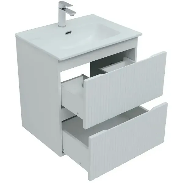 Тумба под раковину Aquanet Джейн (Flat) 60 белый матовый — практичное и стильное решение для ванной комнаты. Корпус и фасады изготовлены из МДФ, покрытого суперматовой пленкой ПВХ повышенной прочности с эффектом «Soft touch». Покрытие не только приятное на ощупь, но и надежно защищает мебель от влаги. Полимерная структура пленки не пропускает воду, поэтому тумба не деформируется со временем и сохраняет первоначальный вид.