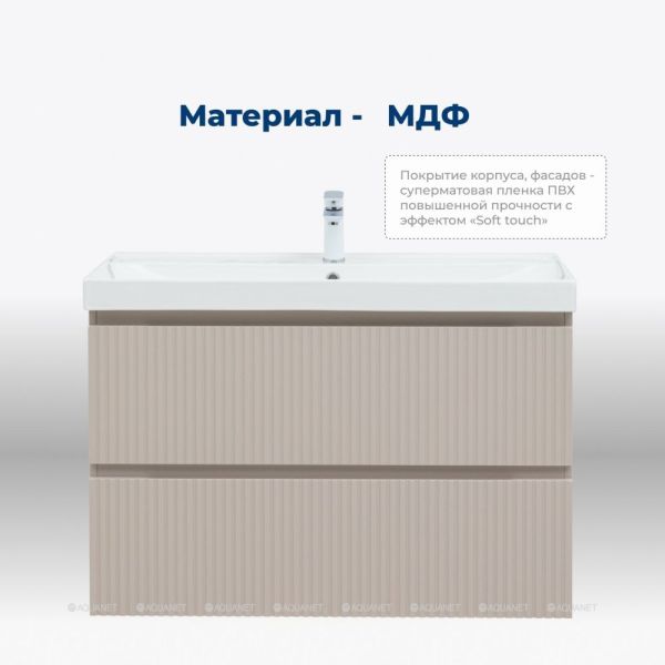 Тумба под раковину Aquanet Джейн (Flat) 90 бежевый сочетает в себе функциональность, прочность и современный дизайн. Подходит для помещений с повышенной влажностью.