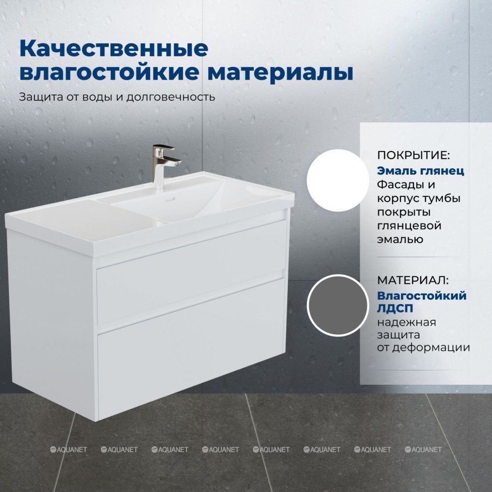 Тумба под раковину Aquanet Nova Lite 2.0 100 в белом цвете с глянцевым покрытием станет практичным дополнением ванной комнаты. Ее лаконичный дизайн сочетается с разными стилями интерьера — от минимализма до классики.