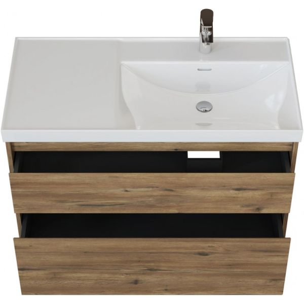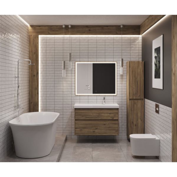 Стильная и практичная тумба для ванной комнаты с продуманной конструкцией. Модель Aquanet Nova Lite 2.0 100 выполнена в цвете дуб рустикальный – матовое покрытие имитирует фактуру натурального дерева и не оставляет отпечатков пальцев.