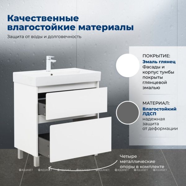 Тумба под раковину Aquanet Nova Lite 2.0 75 напольная, белый глянец