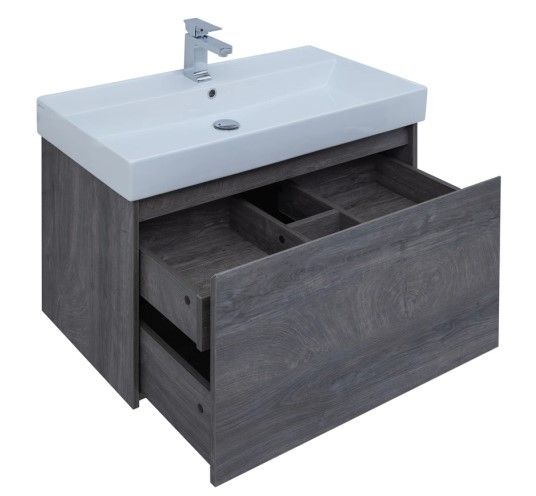 Тумба под раковину Aquanet Nova Lite 90 из влагостойкой ламинированной древесно-стружечной плиты в благородном цвете «дуб рошелье» имеет достойный вид. Фактура натурального дерева выглядит изысканно, а подвесной монтаж придает визуальную легкость тумбе шириной 90 см. Тумба оборудована одним большим ящиком, внутри которого предусмотрен маленький с выемкой для установки сифона и разделителями, где удобно хранить необходимые в ванной комнате мелочи. Фасады выполнены с декоративной интегрированной ручкой, не имеющей острых краев и внутренних углов, что обеспечивает удобство в эксплуатации и легкий уход за мебелью. Направляющие с доводчиками, так что при открывании и закрывании ящикам обеспечен плавный ход и отсутствие неприятных стуков.