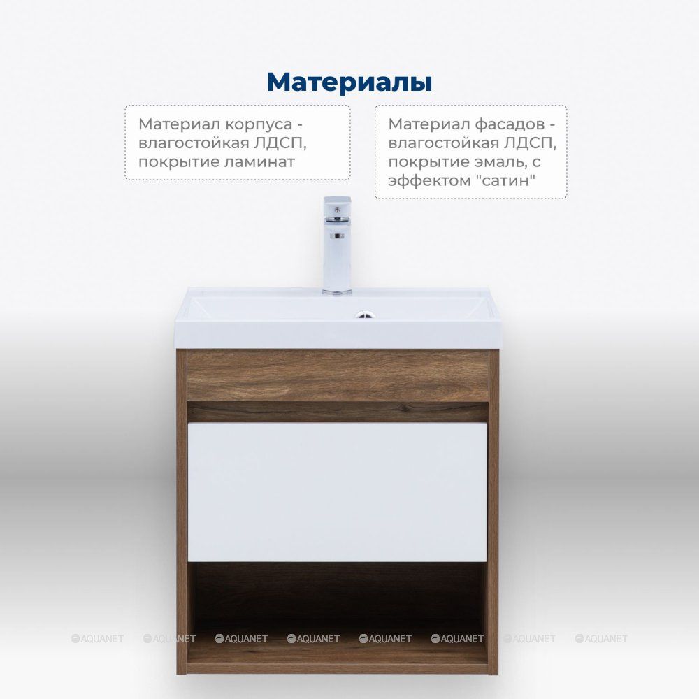 Тумба под раковину Aquanet Тренд 50 дуб рустикальный/белый сатин: Изысканное сочетание функциональности и современного дизайна.