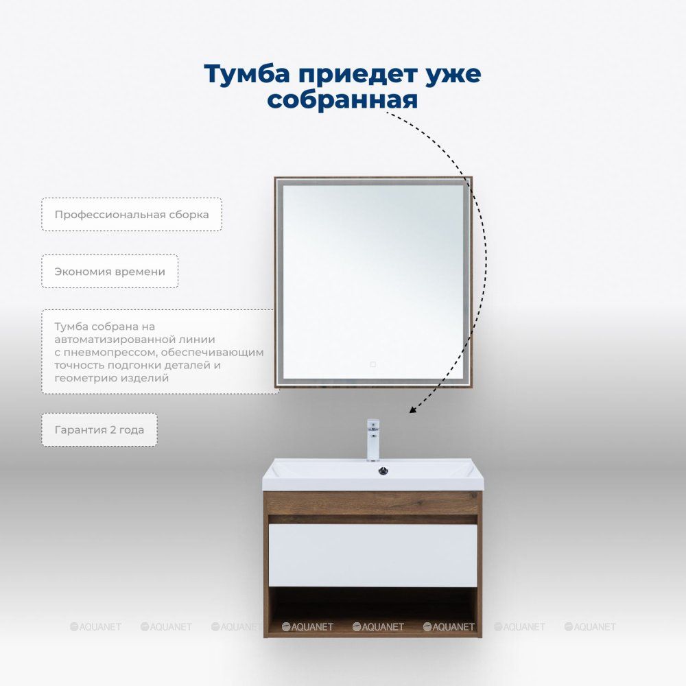 Тумба под раковину Aquanet Тренд 75 дуб рустикальный/белый сатин: Изысканное сочетание функциональности и современного дизайна.