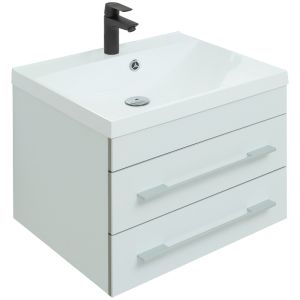 Тумба под раковину Aquanet «Верона» 58 New окрашена в белый цвет. Для изготовления фасадов и корпуса использован материал МДФ, устойчивый к воздействию влаги. Модель подвешивают на стену. Два выкатных глубоких ящика помогут организовать компактное хранение средств для уборки, гигиены, косметики. Широкие серебристые ручки обеспечивают удобство эксплуатации. Габариты — 580х480х445 мм.