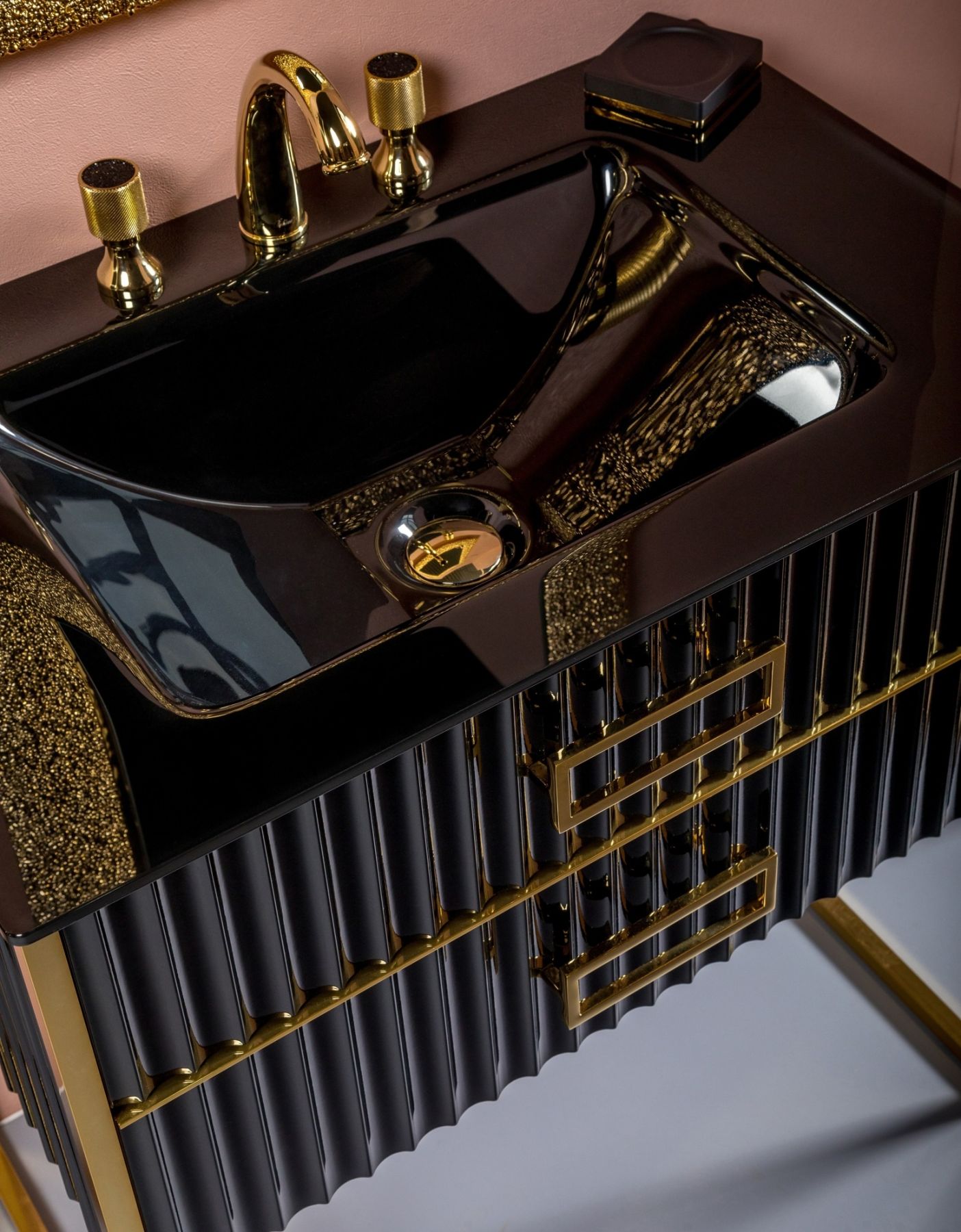 Тумба под раковину Armadi Art Monaco 80см чёрный/золото 866-080-BG купить