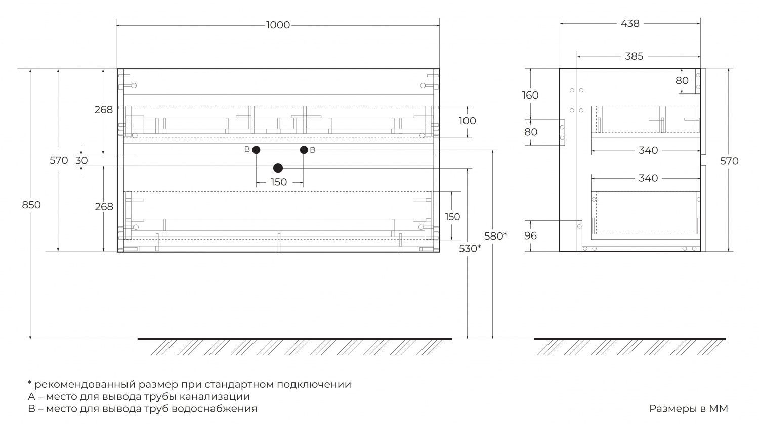 ELEGANT База под раковину подвесная с двумя выкатными ящиками,с LED подсветкой ручек. Светло-зеленый Матовый, 970x469x550 AM-ELEGANT-1000-2C-SO-MM-LED