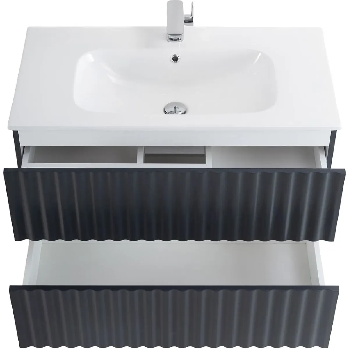 ELEGANT База под раковину подвесная с двумя выкатными ящиками, с LED подсветкой ручек. Серый матовый, 870x469x550 AM-ELEGANT-900-2C-SO-GM-LED