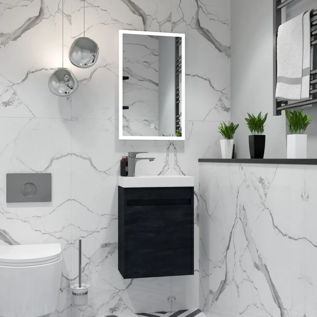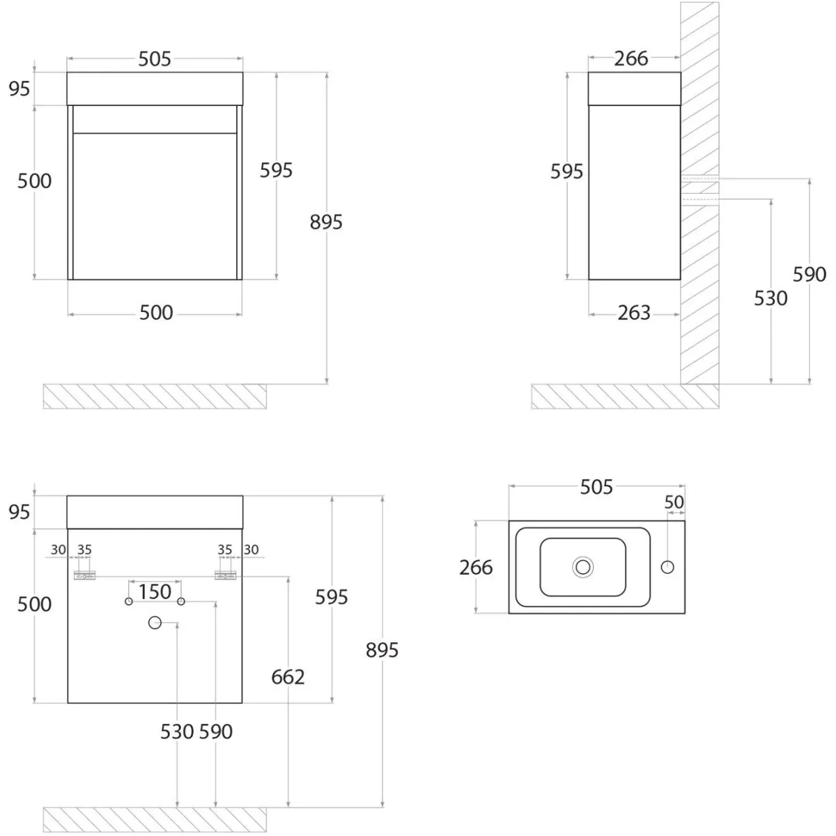 FAMILY-M База под раковину подвесная с одной распашной дверцей, Hard Coal, 500x270x500, Family-M-500-1D-SO-HC