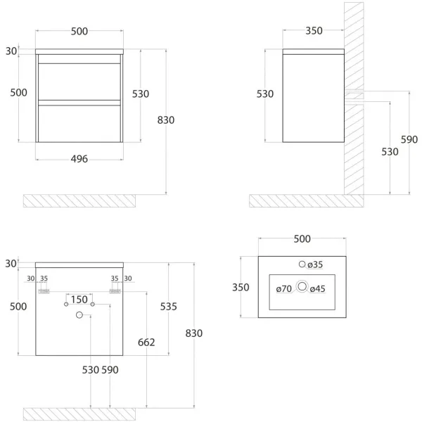 FAMILY-M База под раковину подвесная с двумя выкатными ящиками, Iron Stone, 500x350x550, Family-M-500-2C-SO-IS