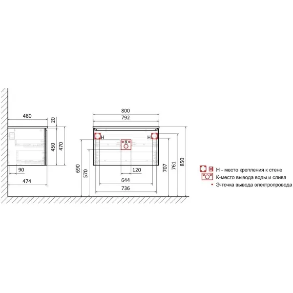 SANREMO База под раковину подвесная, с одним выкатным ящиком, Белый глянцевый AM-Sanremo-800-1C-SO-BL